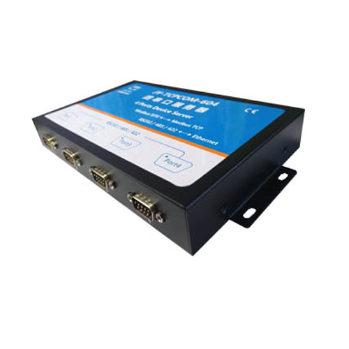 JY-TCPCOM-604串口服务器提供串口转网络功能,能够将4个RS-232/485/422串口转换成TCP/IP网络接口,实现RS-232/485/422串口与TCP/IP网络接口的数据双向透明传输。使得串口设备能够立即具备TCP/IP网络接口功能,连接网络进行数据通信,极大的扩展串口设备的通信距离。