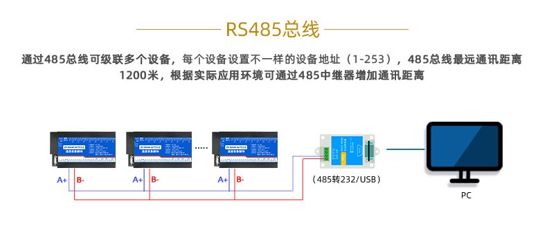 电脑自带的串口一般是RS232,需要配232-485转换器(工业环境建议使用有源带隔离的转换器),转换后RS485为A、B两线,A接板上A端子,B接板上B端子,485屏蔽可以接PB。若设备比较多建议采用双绞屏蔽线,采用链型网络结构。