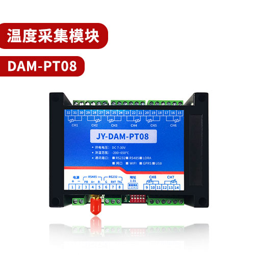 8路模拟量采集8路热电偶温度数据采集 DAM-AITC ,工业级温度采集模块,高精度24位AD转换分辨率0.01●测温精度0.1℃●采集频率10HZ●支持多路同时采集●设备兼容两线制和三线制PT100传感器