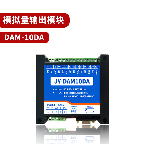 工业级模拟量输出??椋?10路模拟量(4-20MA、0-5V、0-10V)输出;支持RS232、隔离RS485、WIFI、网口等通讯接口;标准Modbus RTU协议;12位DA转换;分辨率0.01,精度0.1;提供配套软件;支持二次开发千分之一12位DA。