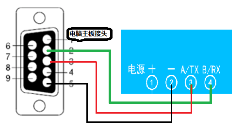 电脑自带的串口一般是RS232,需要配232-485转换器(工业环境建议使用有源带隔离的转换器),转换后RS485为A、B两线,A接板上A端子,B接板上B端子,485屏蔽可以接GND。若设备比较多建议采用双绞屏蔽线,采用链型网络结构。