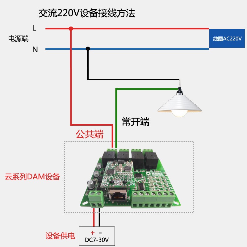 DAM0200C设备是我公司云系列设备中网络版的一种,设备通过连接Internet广域网来进行通讯,使用我司配套的云平台软件可实现远程控制设备功能,每个设备具有唯一ID号方便用户进行二次开发使用。