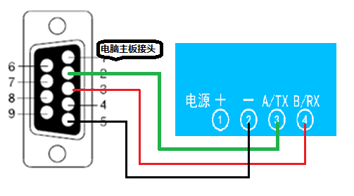 电脑自带的串口一般是RS232,需要配232-485转换器(工业环境建议使用有源带隔离的转换器),转换后RS485为A、B两线,A接板上A端子,B接板上B端子,485屏蔽可以接GND。若设备比较多建议采用双绞屏蔽线,采用链型网络结构。