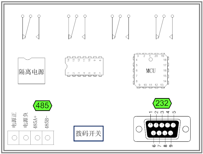 • 继电器输出触点隔离;