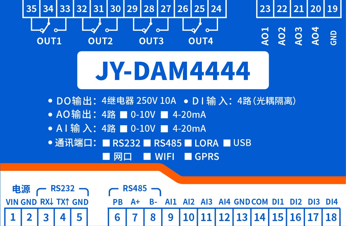 功能说明:16DO+12DI+12AI