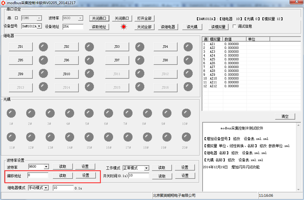 点击软件下方偏移地址后边的“读取”或“设置”来对设备的偏移地址进行读取或设置。
