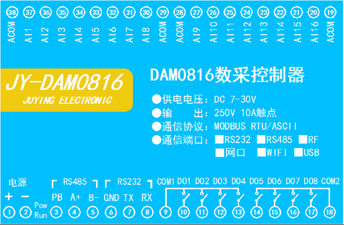 DAM0816A-RS232+485 | ● | ● | ● | 8 | 16 |