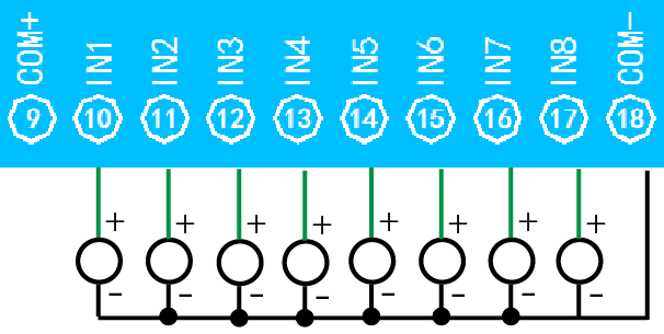 • 八路继电器控制输出,1-4路为单刀双掷开关,5-8路为单刀单掷开关;