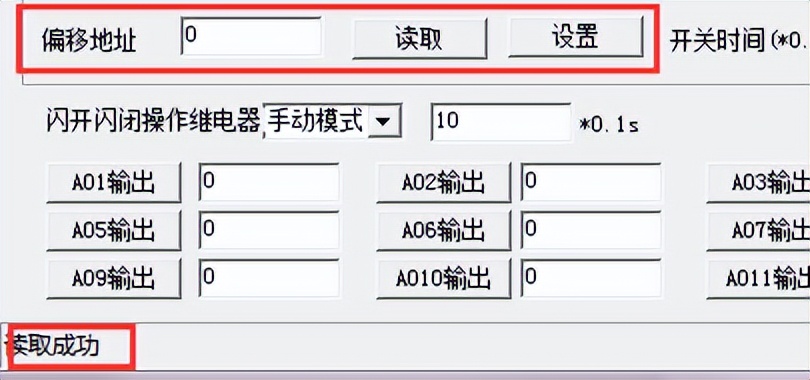 点击DAM调试软件下方偏移地址后边的“读取”或“设置”来对设备的偏移地址进行读取或设置。