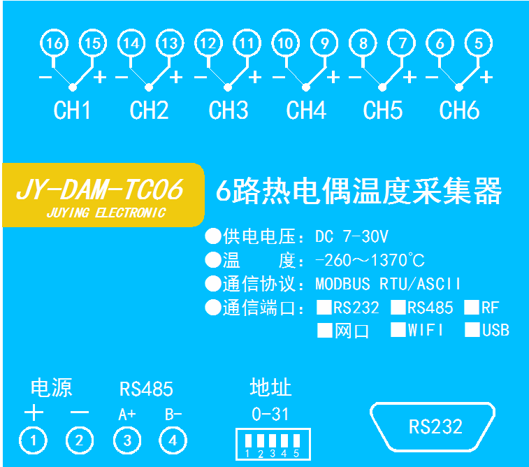 • 6路K型热电偶采集通道;