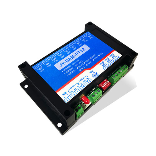 12路PT100温度数据采集DAM-PT12 工业级温度采集??椋呔?4位AD转换分辨率0.01●测温精度0.1℃●采集频率10HZ,●支持多路同时采集●设备兼容两线制和三线制PT100传感器,应用于水温、环境、路面、电缆等温度采集场景