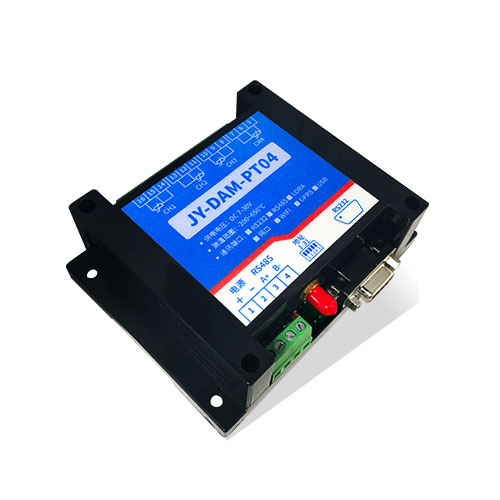 4路PT100温度数据采集,DAM-PT04 工业级温度采集???,高精度24位AD转换分辨率0.01,测温精度0.1℃,采集频率10HZ支持多路同时采集,设备兼容两线制和三线制PT100传感器,应用于水温、环境、路面、电缆等温度采集场景